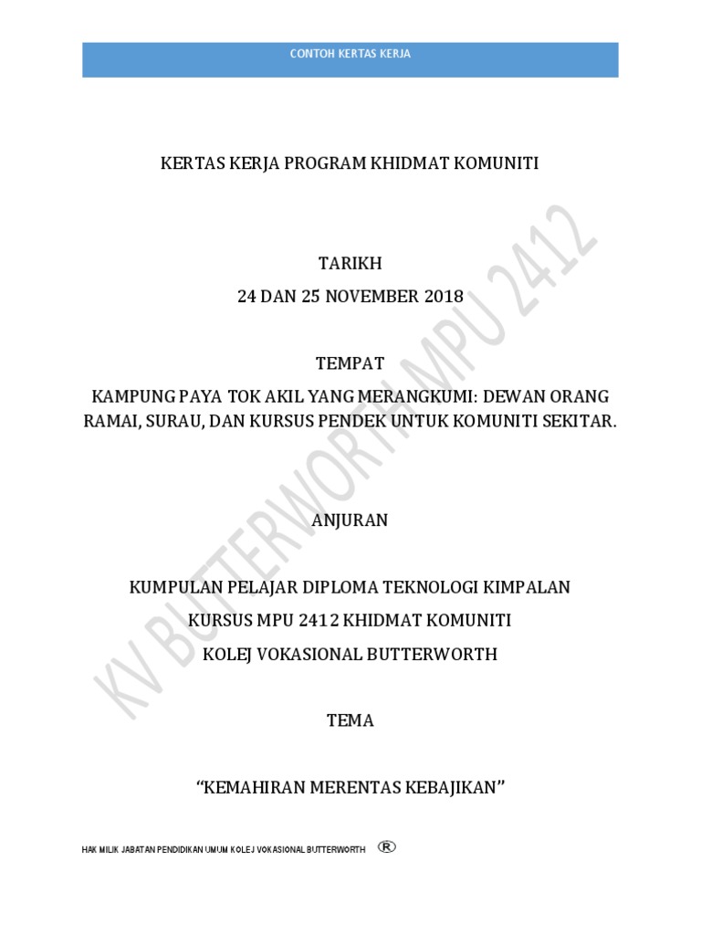 Contoh Kertas Kerja Program Khidmat Komuniti Pdf